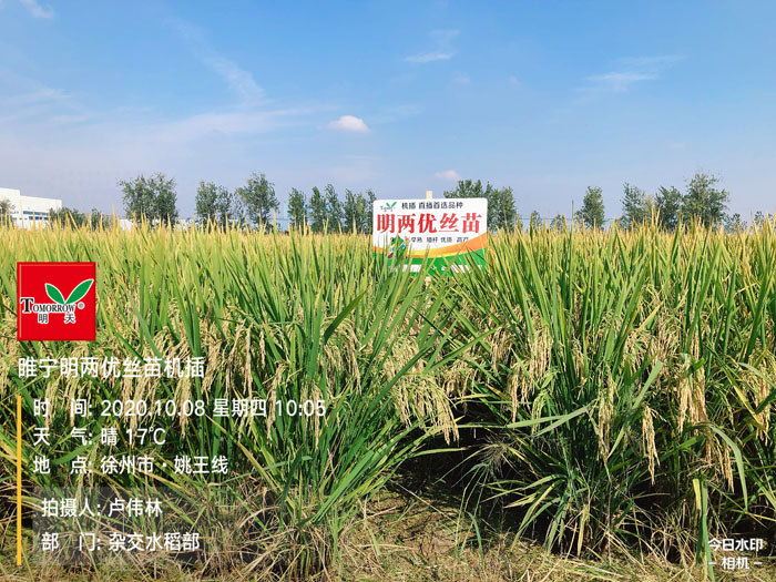 明兩優絲苗是江蘇明天種業科技股份有限公司最新選育的秈型兩系雜交水稻組合。2020年已通過江蘇審定:蘇審稻20200031(江蘇淮河以北稀缺合法品種)。