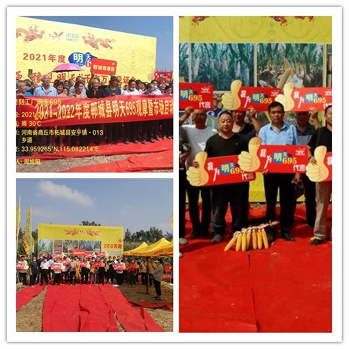 2021年9月12日,江蘇明天種業河南明天分公司在商丘市柘城縣隆重舉辦“2021年度明天695問鼎中原-豫見明天暨ICCP苛刻工廠千畝萬人”觀摩會。來自商丘、周口、開封、許昌、駐馬店、安陽等40多個縣市區近3000名優秀合作伙伴及種植大戶到場觀摩。